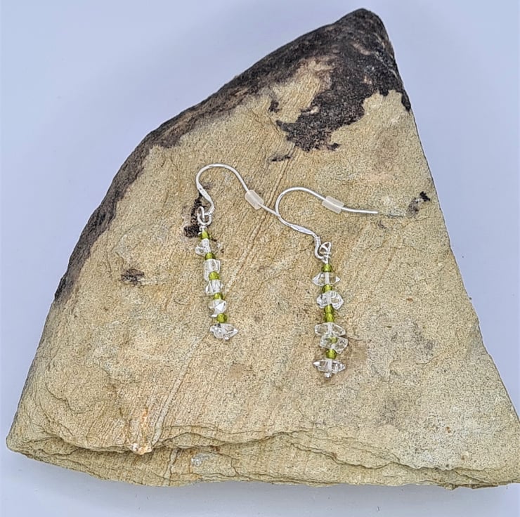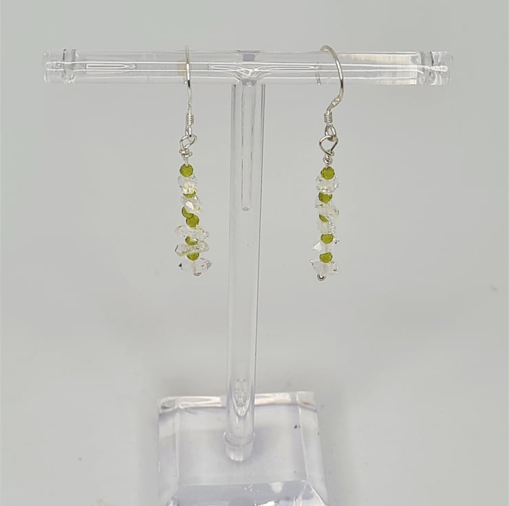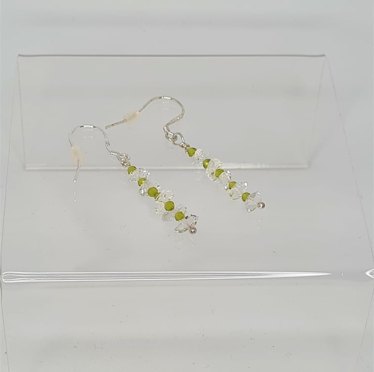 Dangle Earrings- Herkimer Diamond And Peridot Gemstone- Handmade Earrings- Gemstone Jewellery- Quartz- Green Gemstone- Sterling Silver