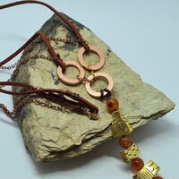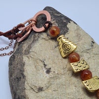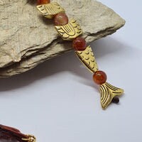 Golden Worry Fish Necklace- Carnelian Gemstones- Hand Hammered Copper Connection