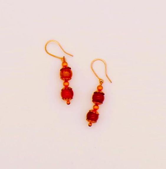 Copper Gemstone Dangle Earrings- Fire Crackle Agate- Copper Bead Caps And Balls- 20 Gauge 0.8mm Handmade Earwires