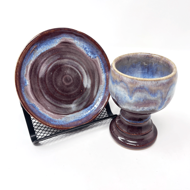 Handcrafted Personal Communion Set ,Pottery Chalice & Plate, Cascading Glazes