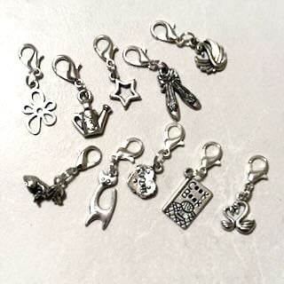 10 Clip on charms. Various designs, some single some double sided
