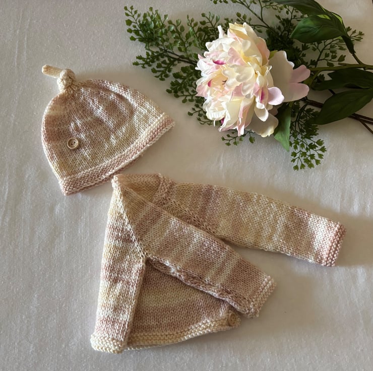 Beautiful hand knitted baby cardigan & hat