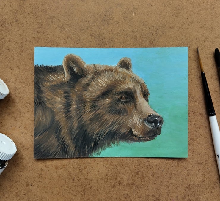 An adorable painting of a bear.
