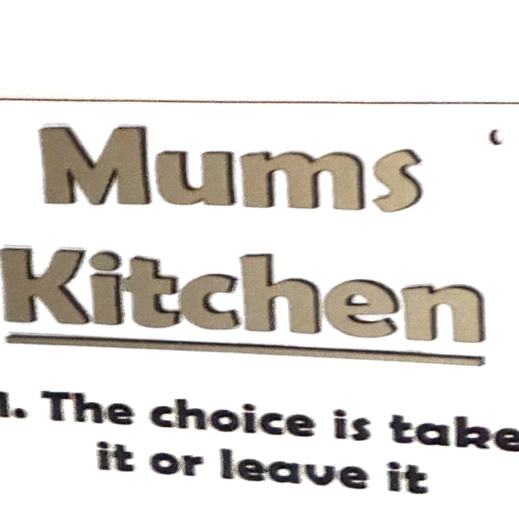 Bring a touch of warmth, humour, and classic home comfort to your kitchen with this charming "Mum's Kitchen" wall sign. Crafted from white-coloured plywood, each of Mum's four timeless kitchen rules is carefully engraved for a clean, lasting finish. The standout feature is the beautifully cut, gold-coloured "Mum's Kitchen" lettering, raised to create a subtle 3D effect that catches the light and adds character to any wall.