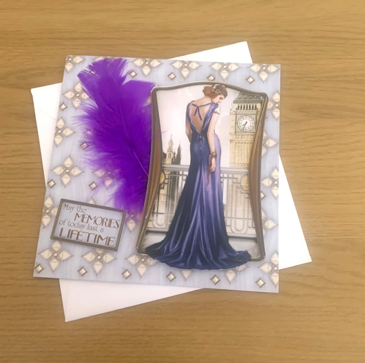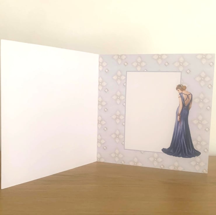 The Art Deco lady & the greeting are both printed onto glossy photo paper.