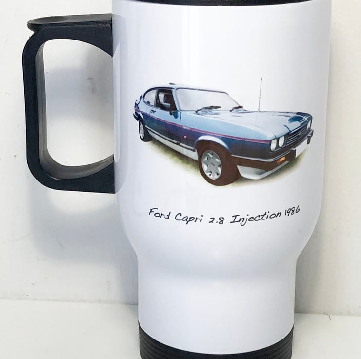 MUG - 14 fluid oz Stainless Steel Travel Mug (155mm high, 80mm diameter not including handle) suitable for most vehicle cup holders. If choosing the Four Mug Option they do NOT all need to be the same, the other Three can be of any other subjects from my range.
