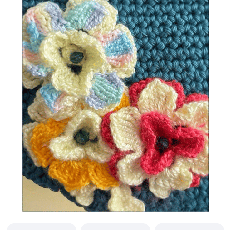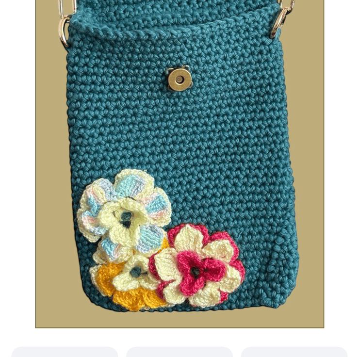 Make a statement with this vibrant, hand-crocheted crossbody bag by ThatCrochetLadyUK. Combining a rich, dark teal base with a garden of 3D blooms, this bag is the perfect blend of boho-chic style and handcrafted quality.