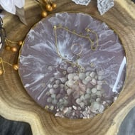 It can be used as a coaster, a base of candles, or a beautiful tray to hold your jewelry and small accessories. Even on its own. It serves as a stunning decorative piece that adds a touch of elegance to any space.