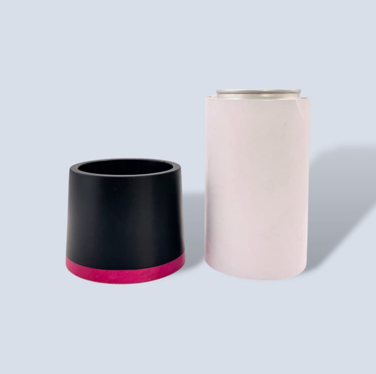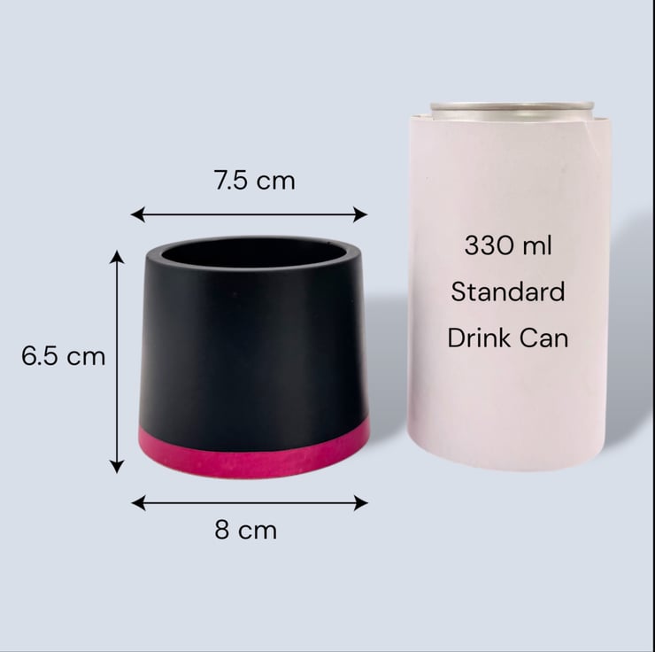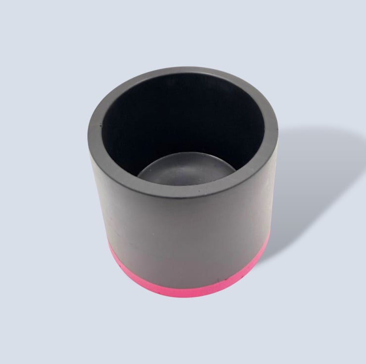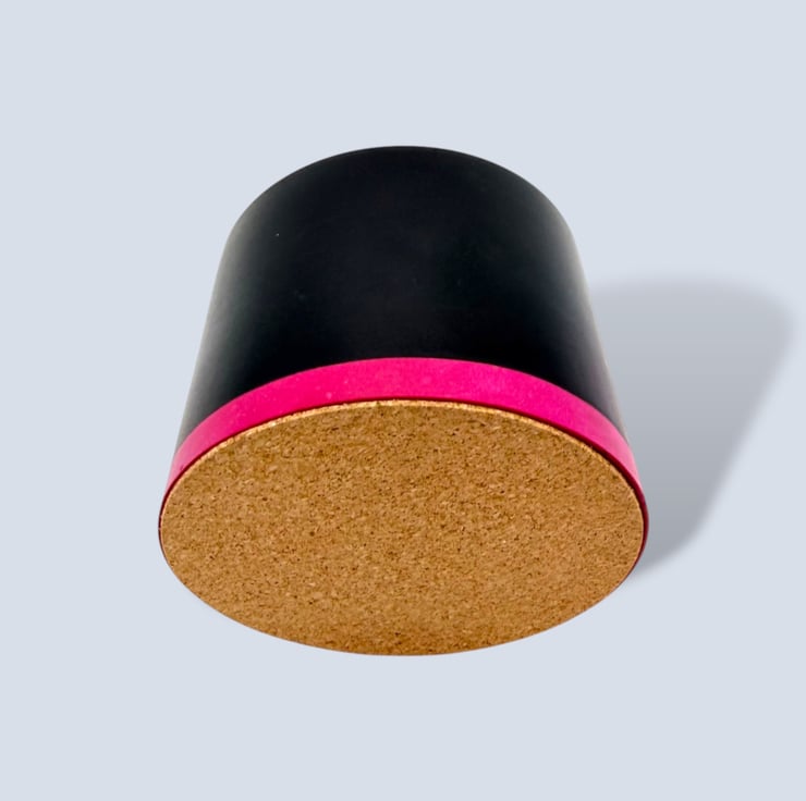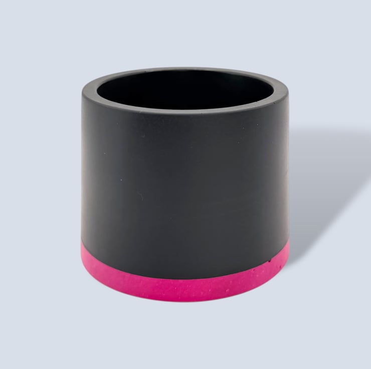 This piece was inspired by the contrast between bold colour and simple form. The deep black creates a calm, grounding base, while the bright fuchsia pink band adds a clean, uplifting edge that catches the light and draws the eye.
