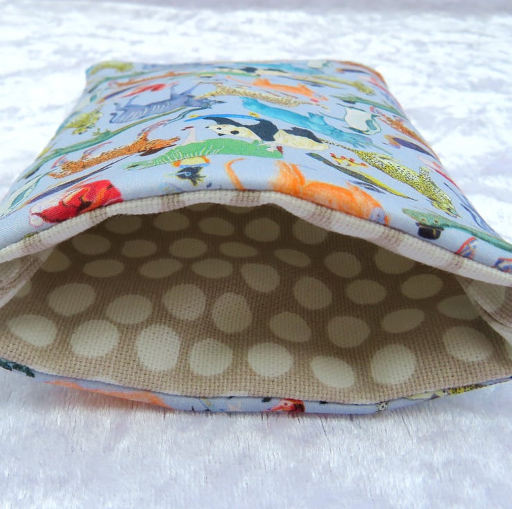 It has been backed with a lightly padded interfacing, and lined with a contrasting spotty cotton.