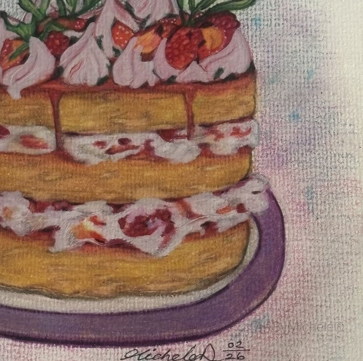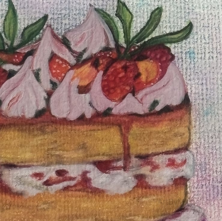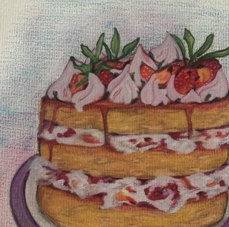 This was such a treat to draw! Scrumptious Eton Mess, a summer classic dessert for your wall…created using vibrant professional colour pencils and acrylics.