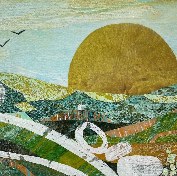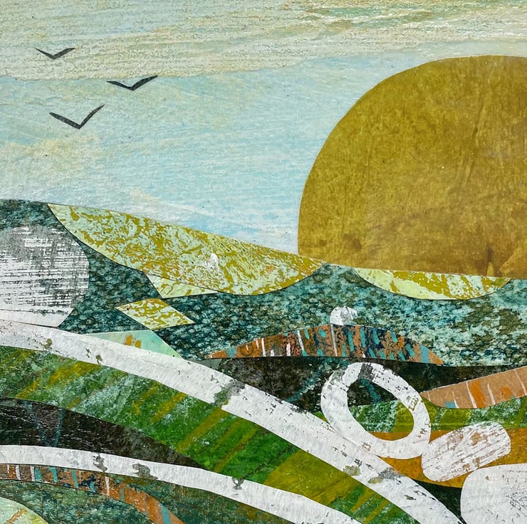 How I made it - if you know me and my work (Jane Wilson Artist is how you find me on the internet or social media) you'll know I am a mixed media artist who uses a lot of collage in her work. These smaller pieces are a great way to use up the pieces of collage left over from larger paintings. I layer everything and then add details with paint and art pens at the end.