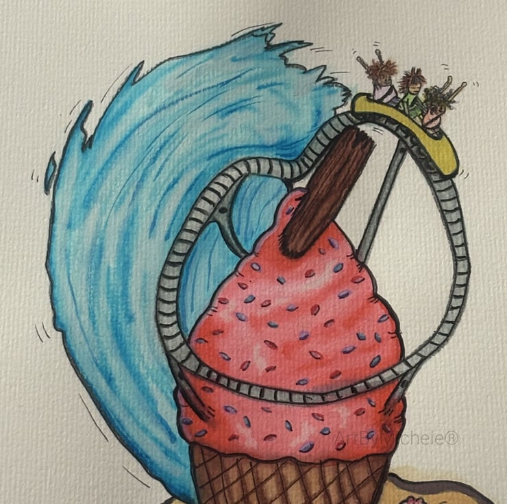 Fun at the beach is a playful take on happy memories of family beach days out! eating ice cream, the fun we had on the roller coasters and many many more….