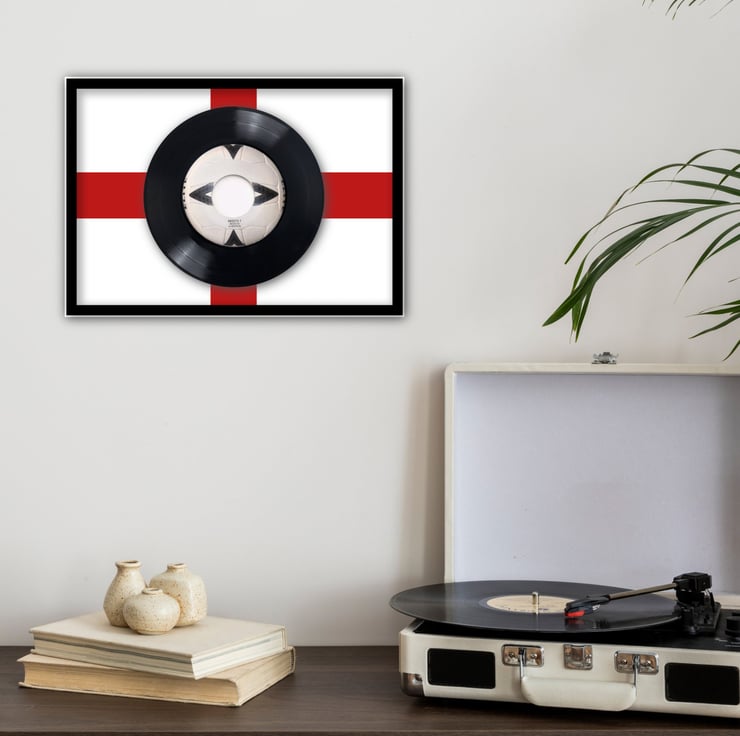 To celebrate its big anniversary, this iconic UK Number 1 is now lovingly mounted and showcased in a professionally framed A4 display, complete with a glass front and a bold red vinyl cut England flag graphic that feels right at home in any proud supporter's space.