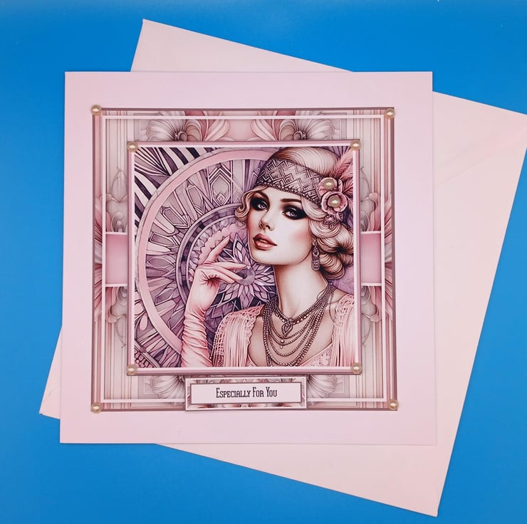 I have added pearl acrylic stones to add something special to the card The greeting reads "Especially For You"