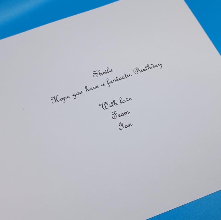 This card measures 8x8 inches 20x20cms and comes with a matching envelope and a insert that can be personalised with your own message please see the example of the insert in the pictures