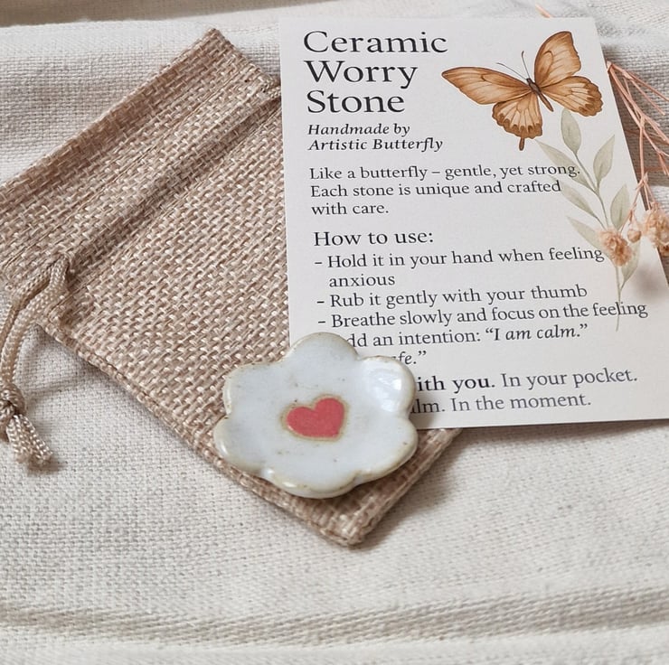 - 3 ceramic worry stones (including one flower-shaped piece)