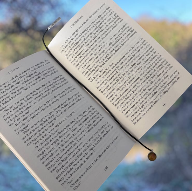 The cord slips between the pages while the balanced charm design keeps your place securely marked. The bookmark measures approximately 33cm in length, suitable for use in both paperback and hardback books.