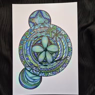 A zentangle style flower pattern on the left and right. You can have this piece portrait or landscape, however you think it works best!