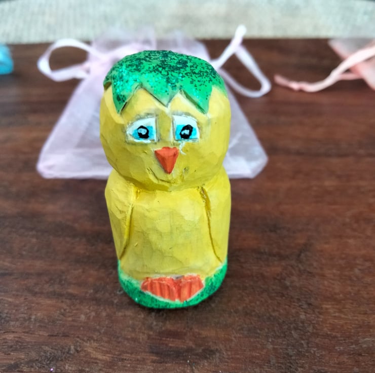 These are hand carved figures around 1.5"-2" high. Some are carved from bassa wood and some are carved from silver birch. They have been oiled and painted using acrylic paint. Any questions please ask.