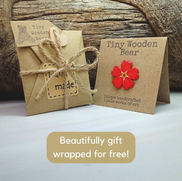 This handmade red forget me not pin is a delicate, hand-painted memorial brooch designed to symbolise remembrance, love, and lasting connection. A more unusual alternative to the traditional blue flower, it makes a thoughtful bereavement gift or a meaningful token to share at funerals and memorials.