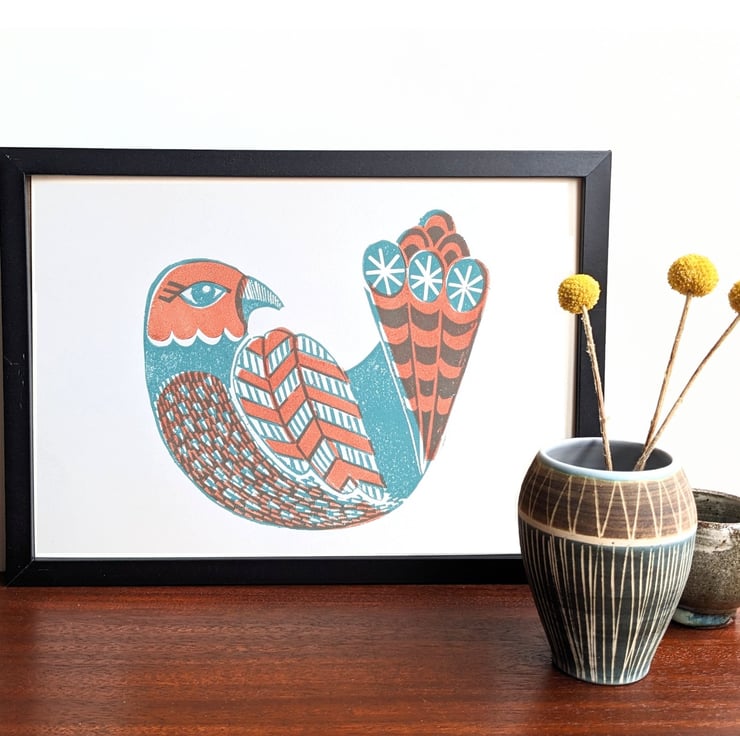 Handmade original Linocut printed onto A4 off-white 190gsm acid-free paper using gorgeous vibrant Cranfield inks.