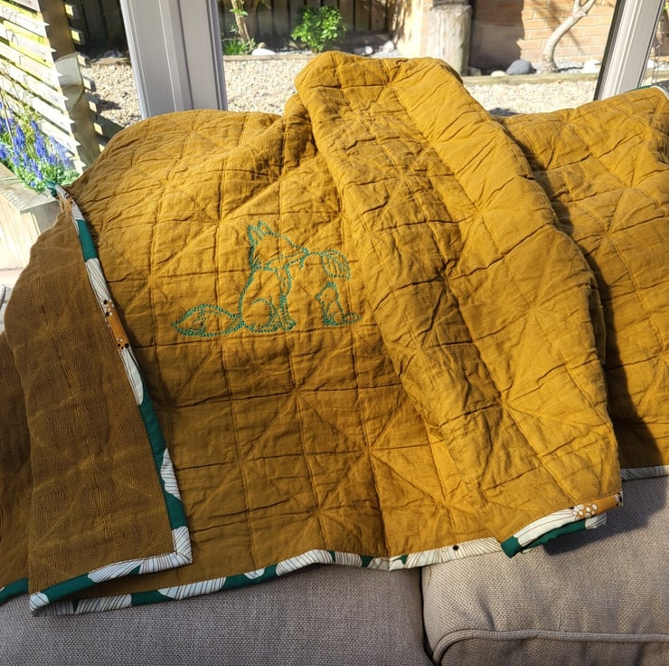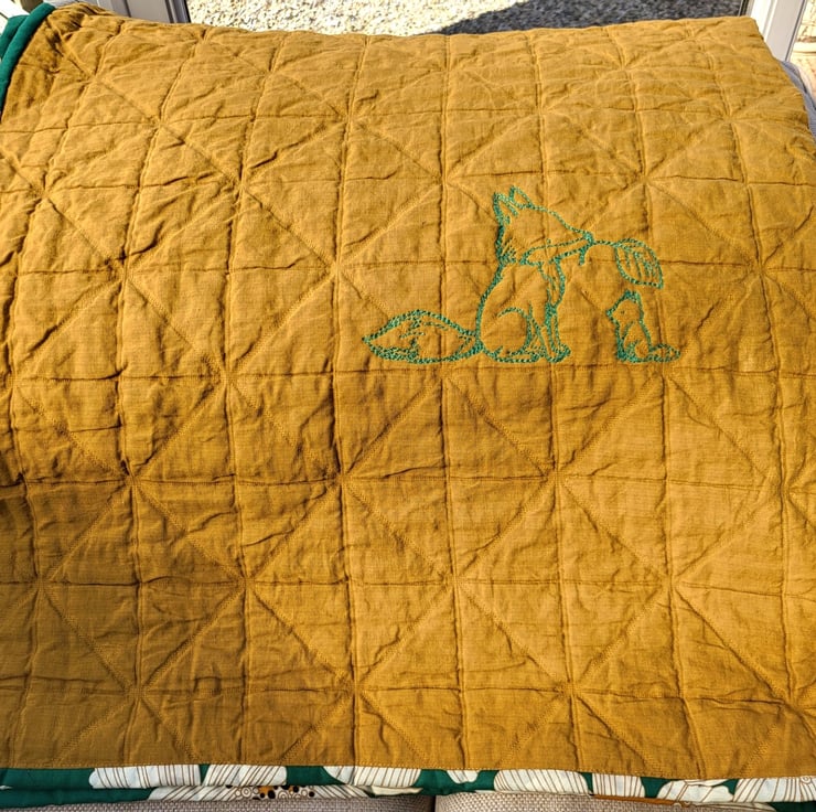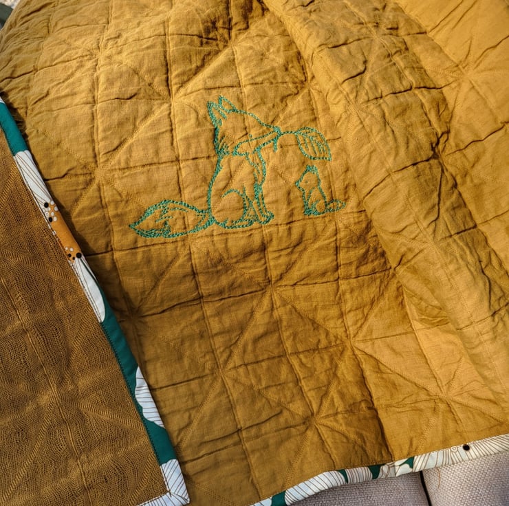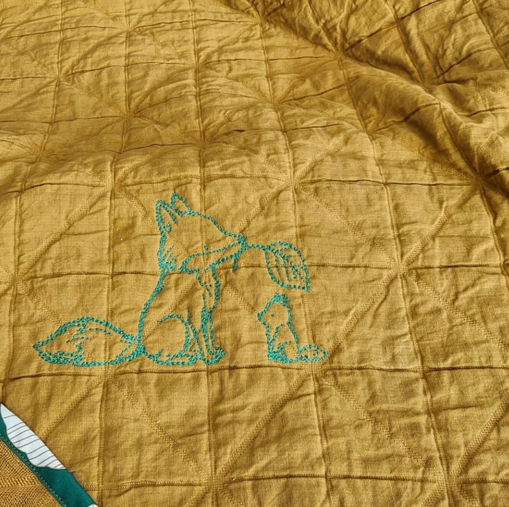 This stunning, one-of-a-kind blanket is a true celebration of nature and craftsmanship. Featuring a heart-melting embroidery of a mother fox and her sweet cub, it is designed to be a cherished heirloom that brings both warmth and a pop of sophisticated color to your nursery.