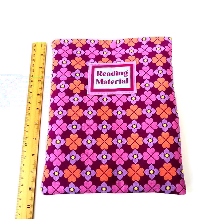 Keep your current paperback from getting scuffed with this attractive quilted book sleeve with a fun "Reading Material" applique on the front and snap closure to stop your book slipping out.