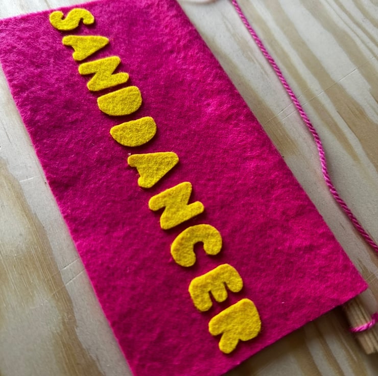 Handmade felt hanging banner featuring north eastern dialect.