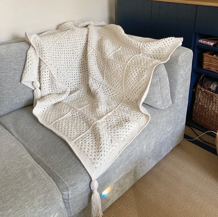 This gorgeously soft granny square blanket has been crocheted by me in an Aran weight yarn.....this yarn gives the blanket a lovely comfy cuddly feel and is a little heavier.