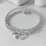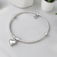 Sterling Silver Initial and Heart Charm Personalised Stretch Stacking Bracelets