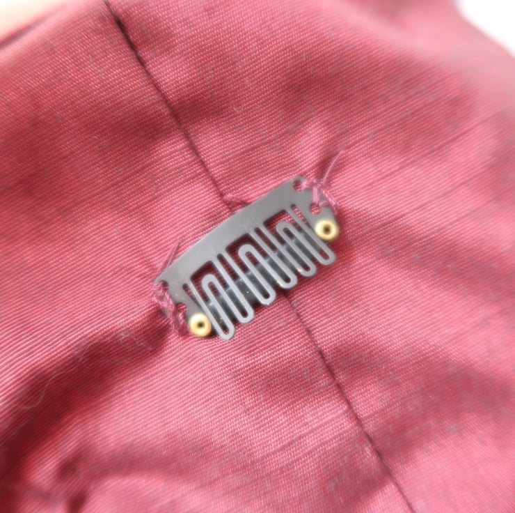 Hair clip sewn in for hold.