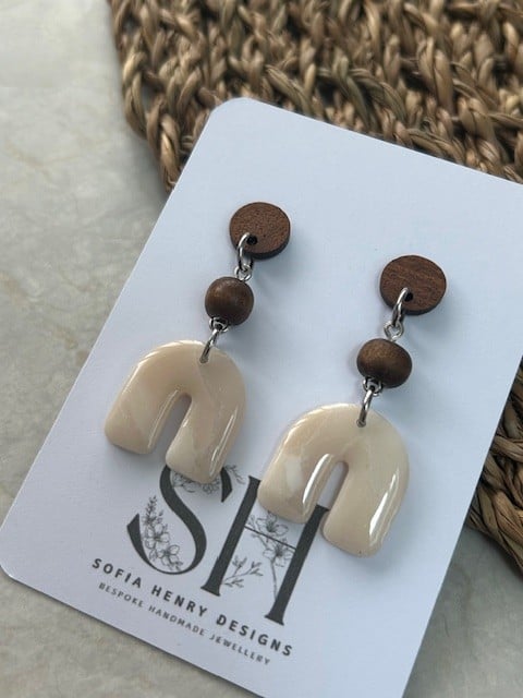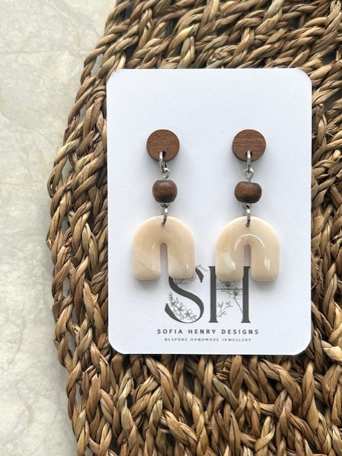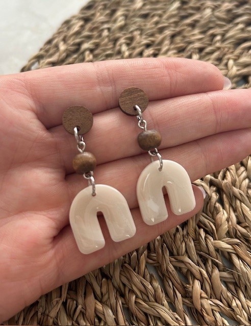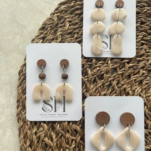 Elevate your everyday style with these elegant handmade polymer clay earrings, thoughtfully designed to blend modern shapes with soft, neutral tones. Each pair is carefully crafted using high-quality polymer clay, enhanced with delicate layers of alcohol inks and shimmering mica powders to create subtle depth, marbling, and a gentle pearlescent finish. The result is a beautifully organic look-no two pairs are ever the same, making each piece truly one of a kind.
