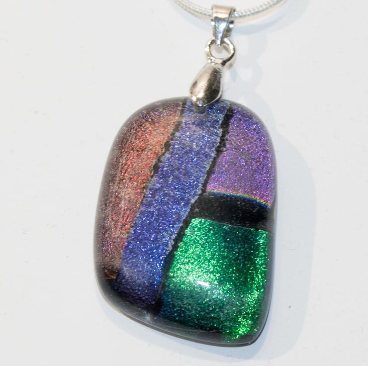 Patchwork Dichroic Glass Pendant with Silver Chain - 1278