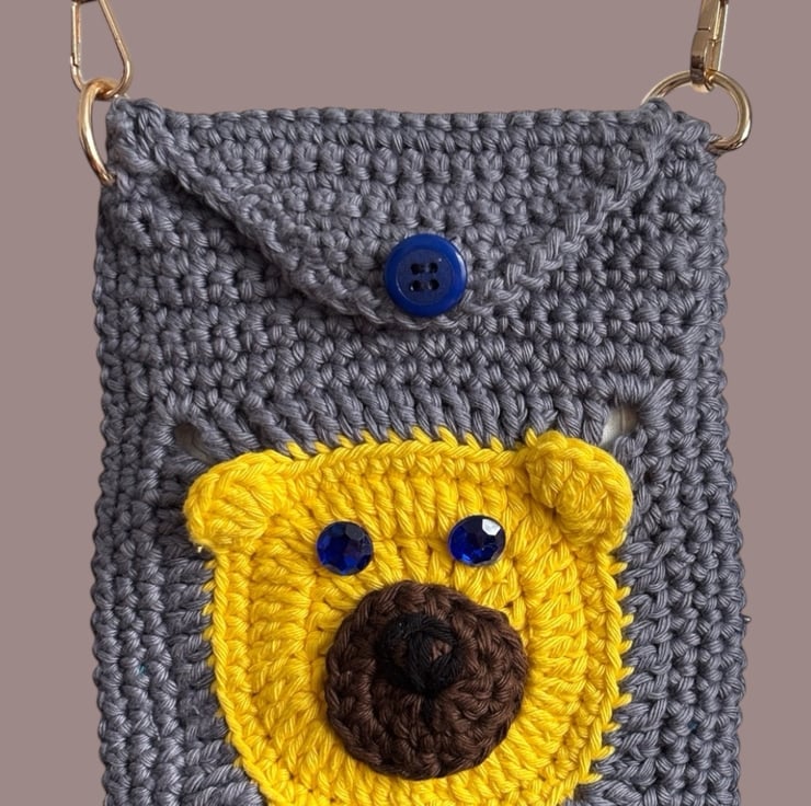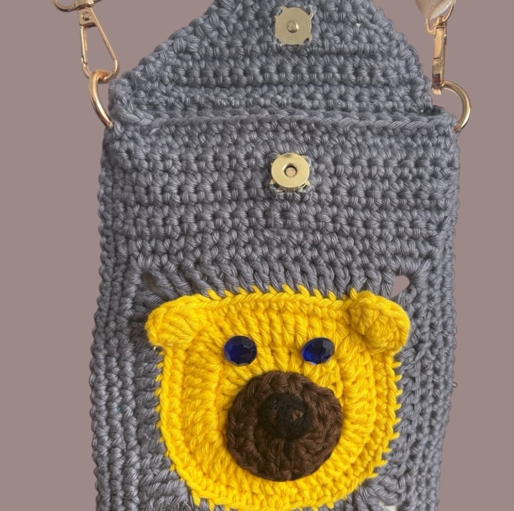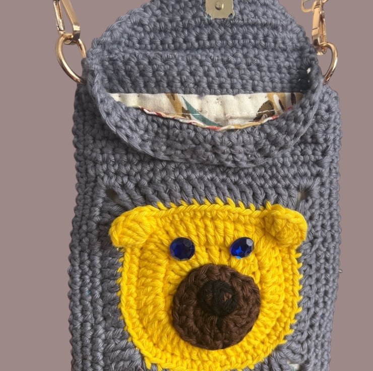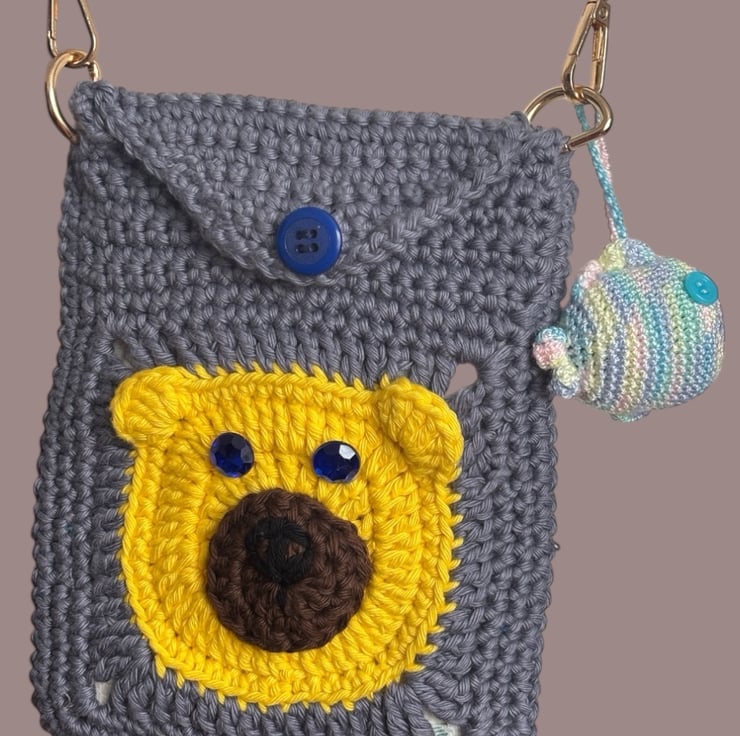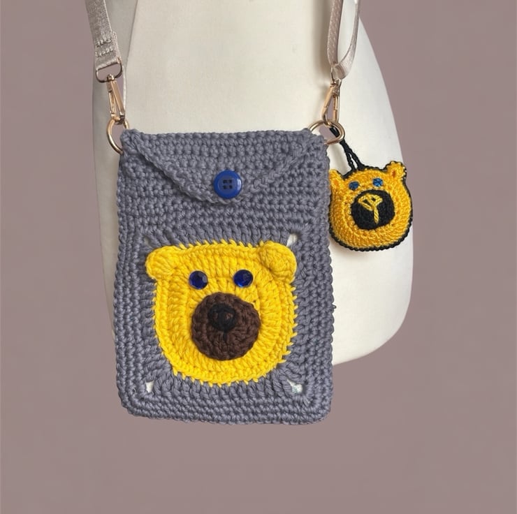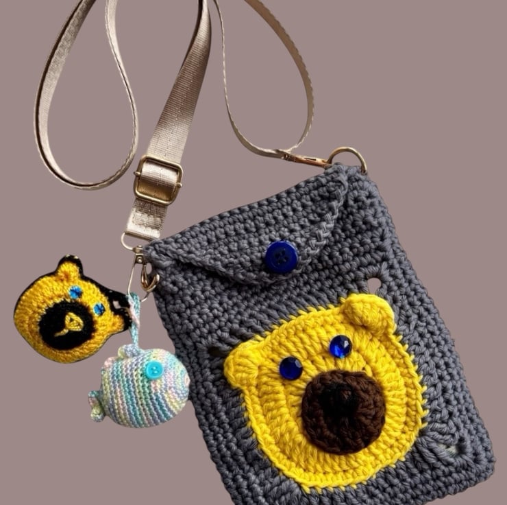 This charming, one-of-a-kind crossbody bag features an adorable bear face on both the front and back. Handmade with care using high-quality cotton yarn, it's as functional as it is cute!