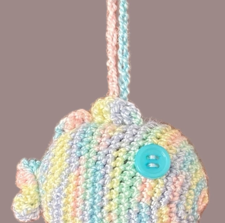Removable Charms: Includes two custom charms—a bear and a variegated fish (shades of Yellow, Blue, and Green) with button eyes.