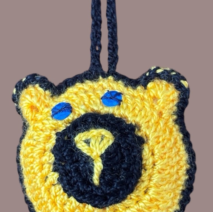 Unique Details: The bear's eyes are made from bright blue beads. For extra structure and sustainability, the bag is padded with scrap yarn.