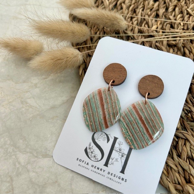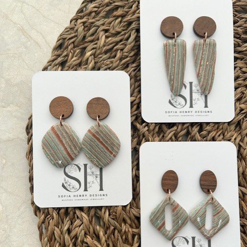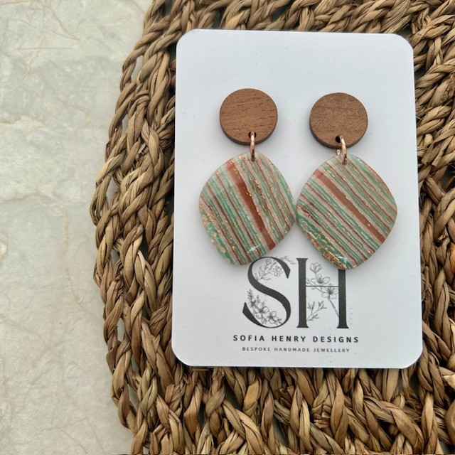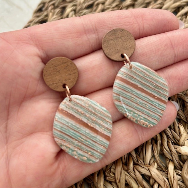 Elevate your accessory collection with these beautifully handcrafted polymer clay earrings, designed to bring a subtle yet distinctive statement to your look. Each pair is individually made using high-quality polymer clay, layered with alcohol inks and finished with delicate touches of copper leaf. The result is a soft, earthy palette of green and warm copper tones, with fine linear textures that create depth and a gentle shimmer as they catch the light.
