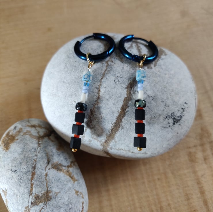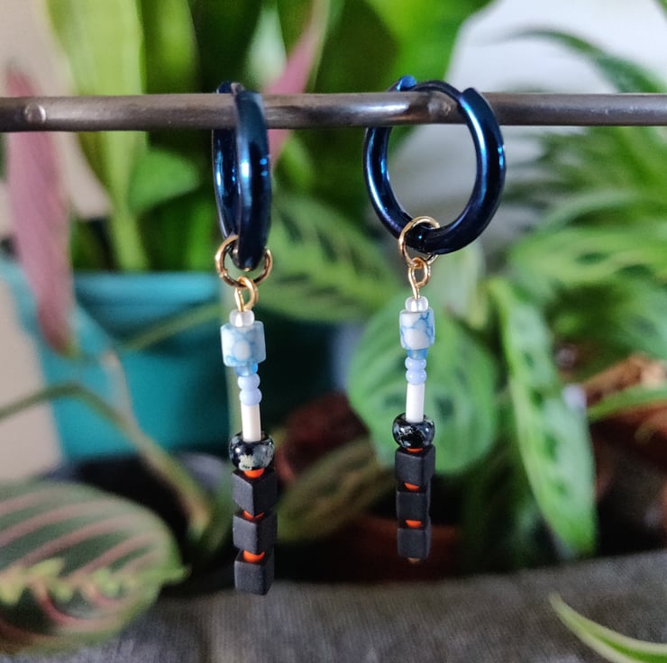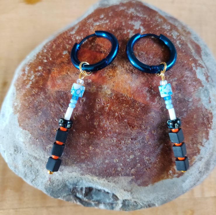 These bead earrings were handmade by me, using Czech and Miyuki glass beads, and a dyed howlite bead.