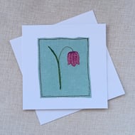 Made from a gorgeous duck egg blue linen, it depicts a little wren perching on a branch. The design is made by appliqueing small scraps of fabric and stitching them using free motion embroidery.