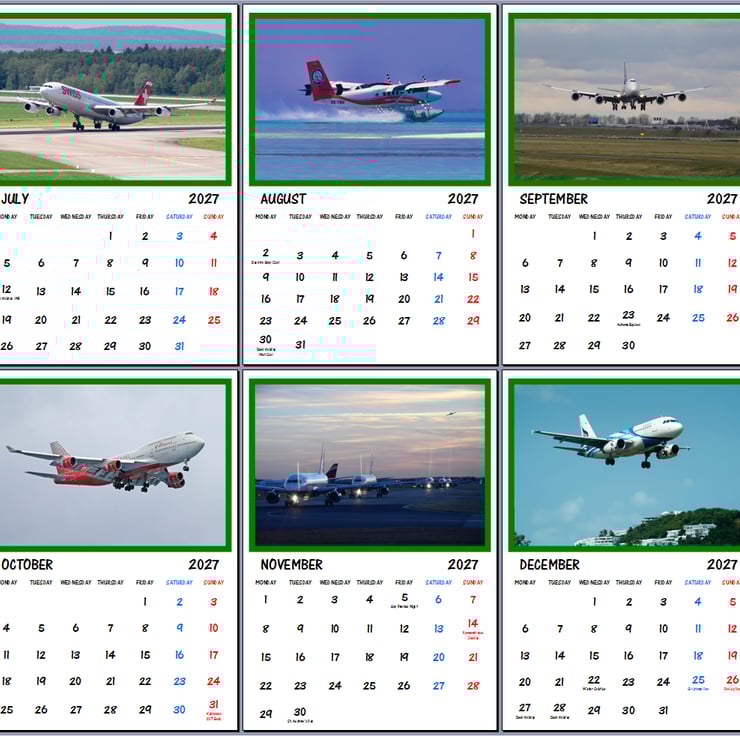 2027 Calendar Aeroplanes Commercial A4 Page Per Month