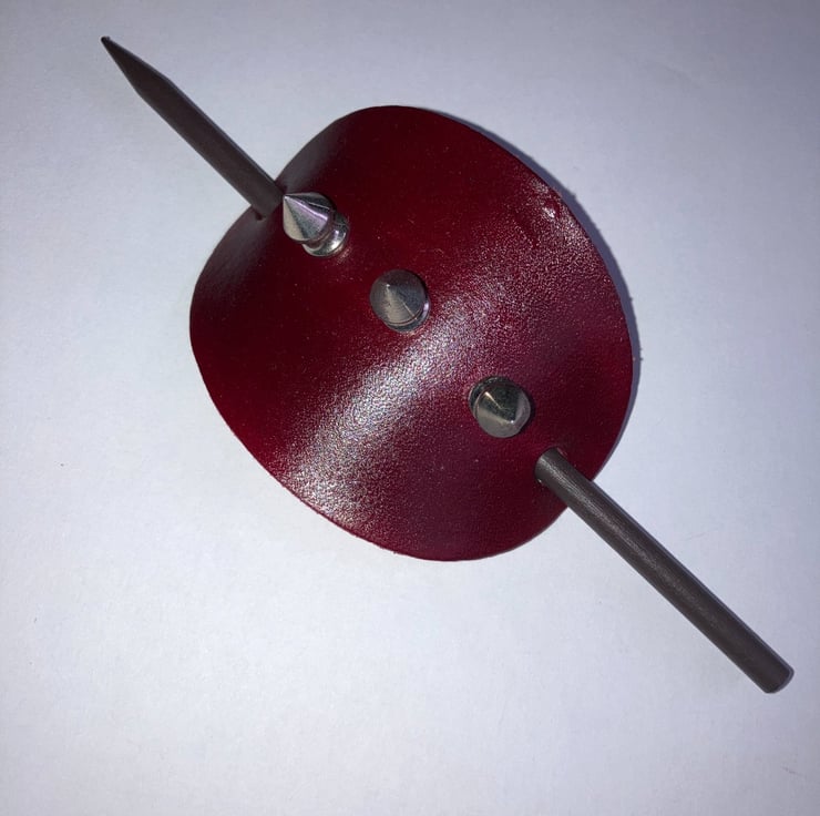 Hand-dyed Red Leather Hair Stick Barrette with 3 Spikes