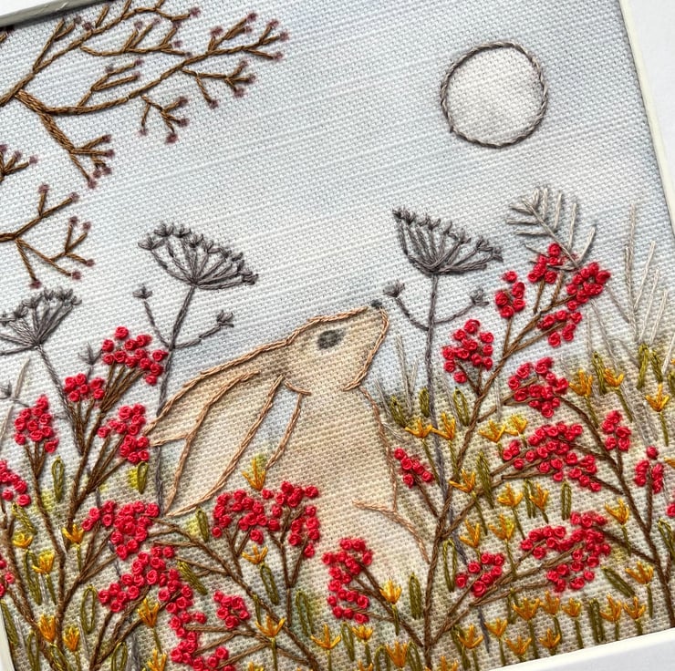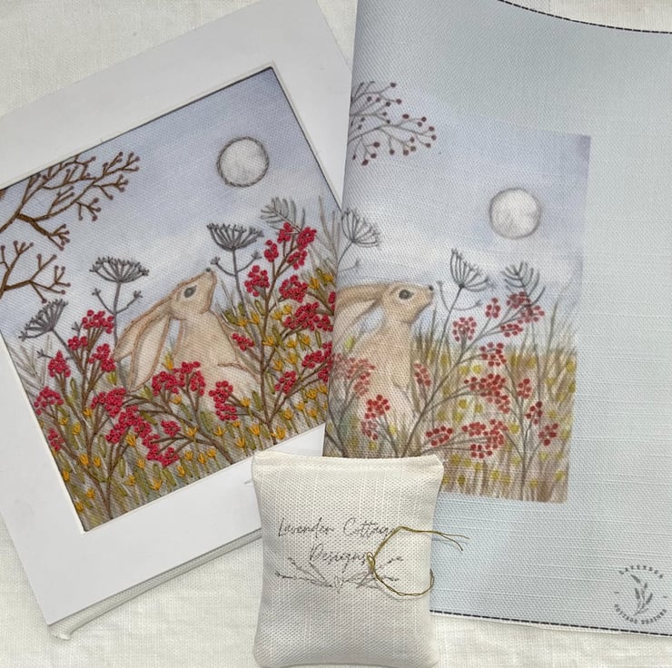 Inspired by folklore, countryside walks, and the quiet beauty of the night sky, the hare sits peacefully among berries and wild plants beneath the gentle glow of the moon. A whimsical project full of seasonal charm.