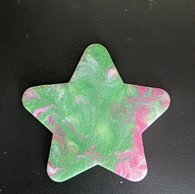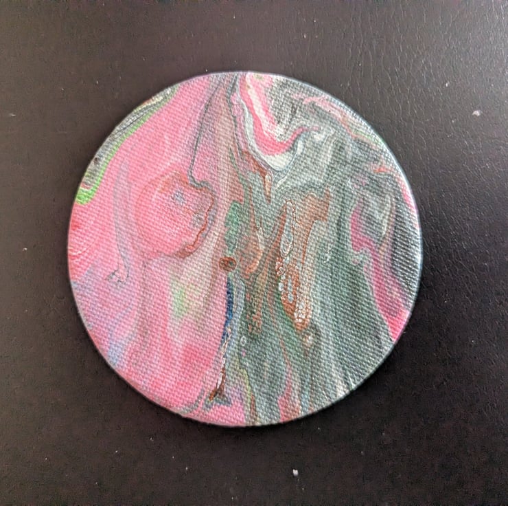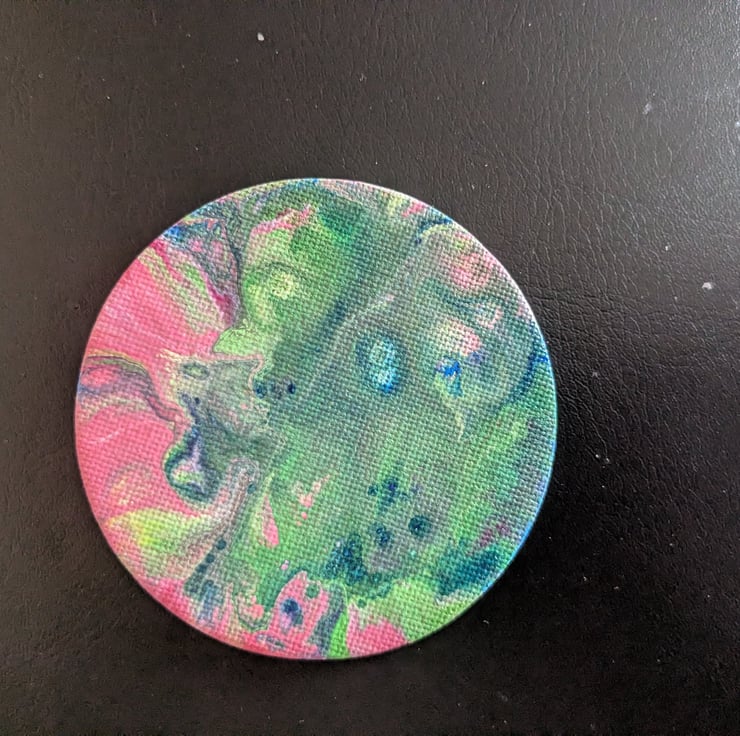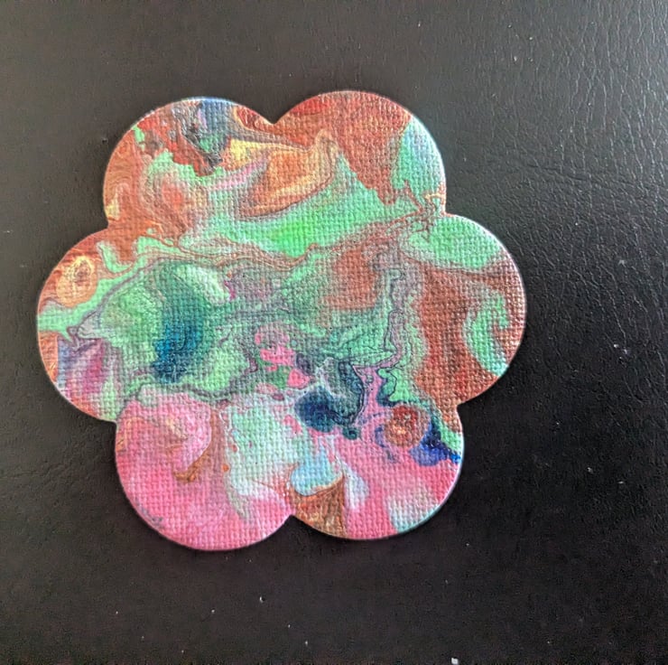 These fridge magnets have been created using the waste paint from the acrylic pour canvas's to create unique designs on a smaller scale. The colours will vary depending on what pours were done beforehand, and the magnets have been created between each pour so some magnets have a greater range of colours than others. These are currently unvarnished, but a varnish coat can be added for an extra cost of £1 per magnet, plus a few days for drying before they can be posted out.
