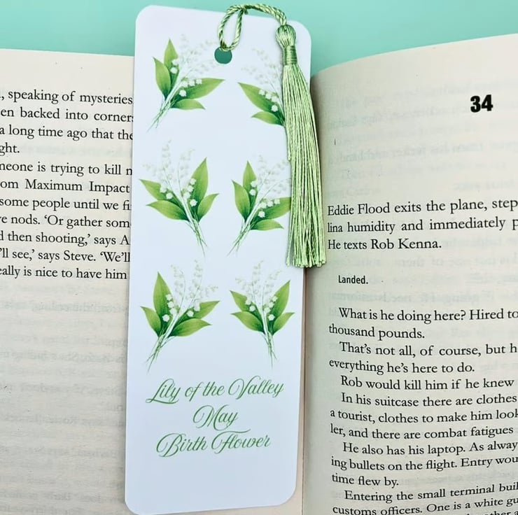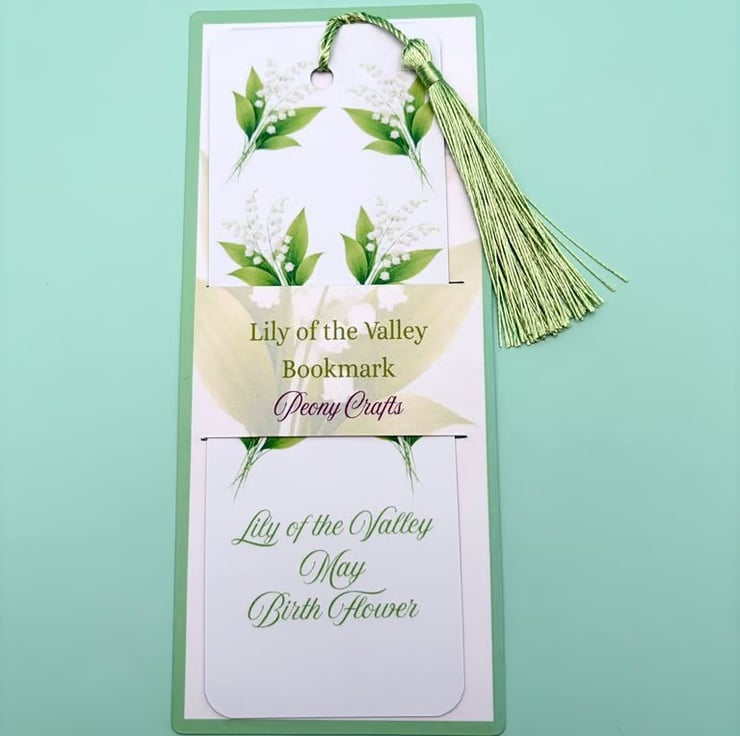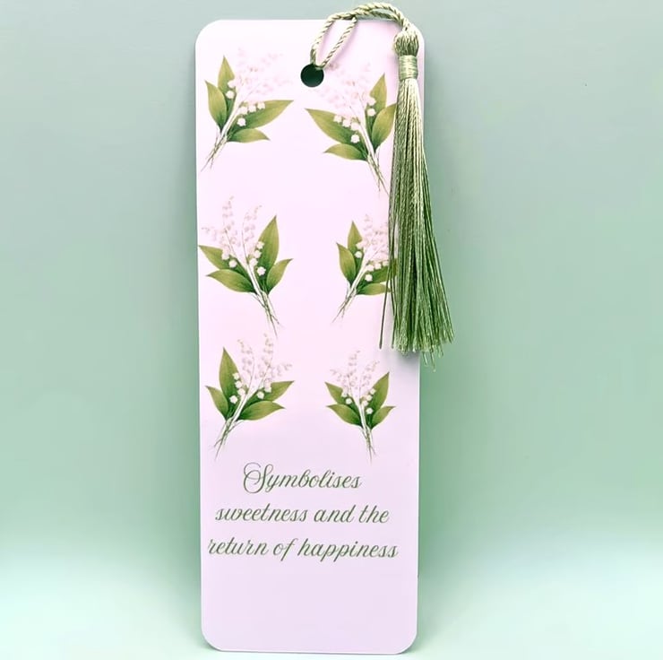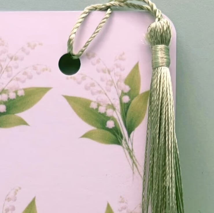 Each bookmark is handmade by me and features a soft Lily of the Valley floral design, finished with a smooth laminated surface and a coordinating tassel for a classic, elegant feel.