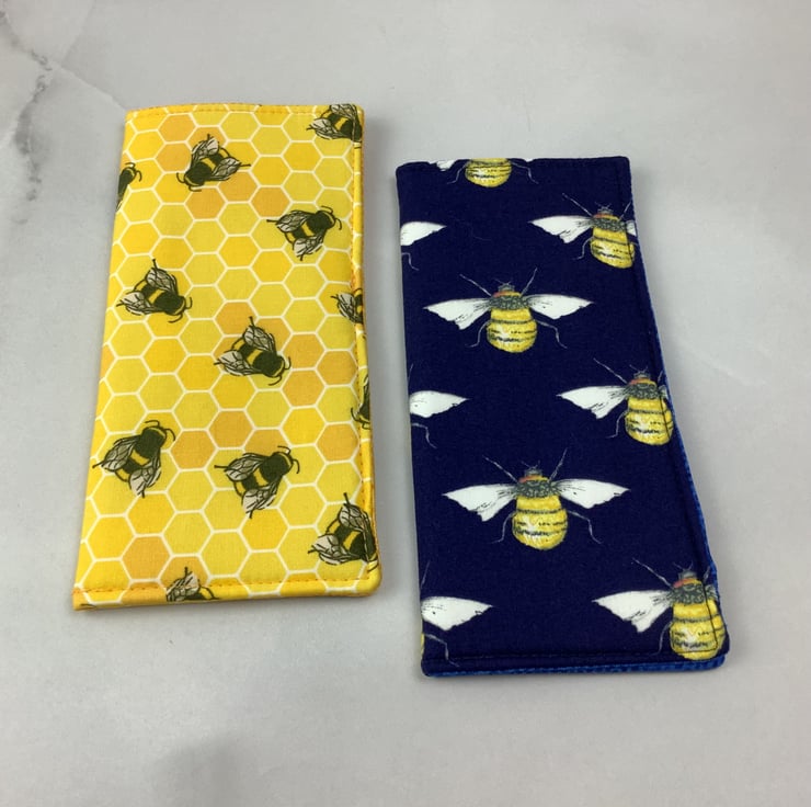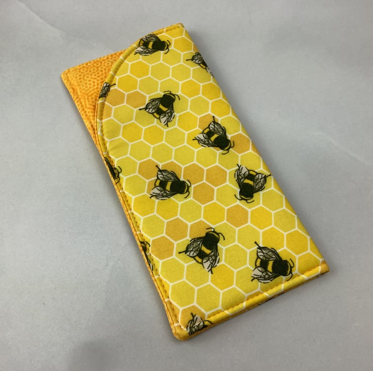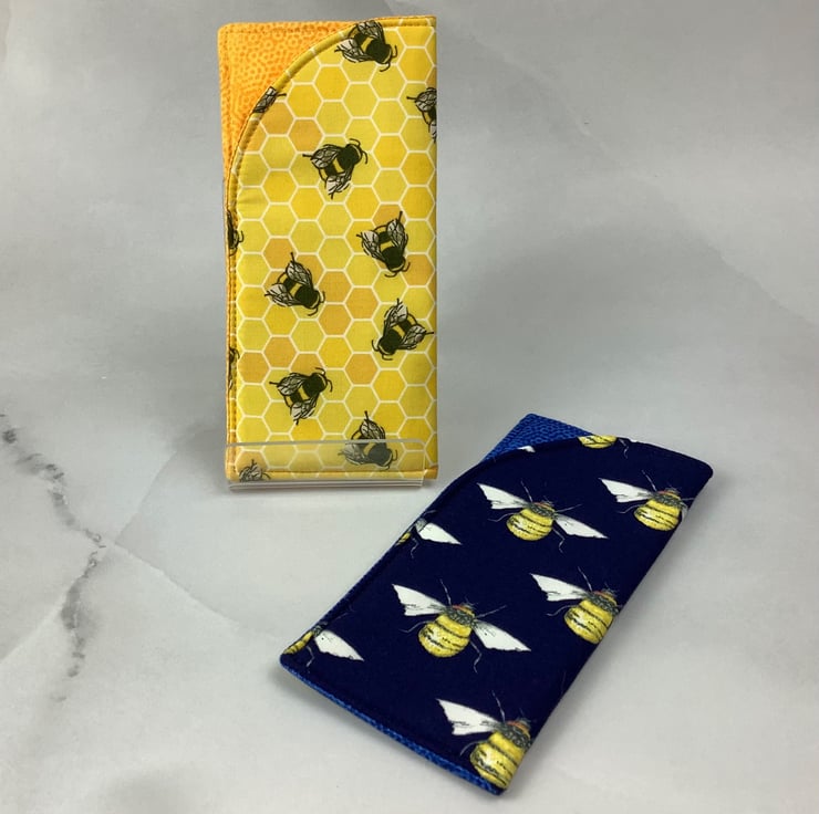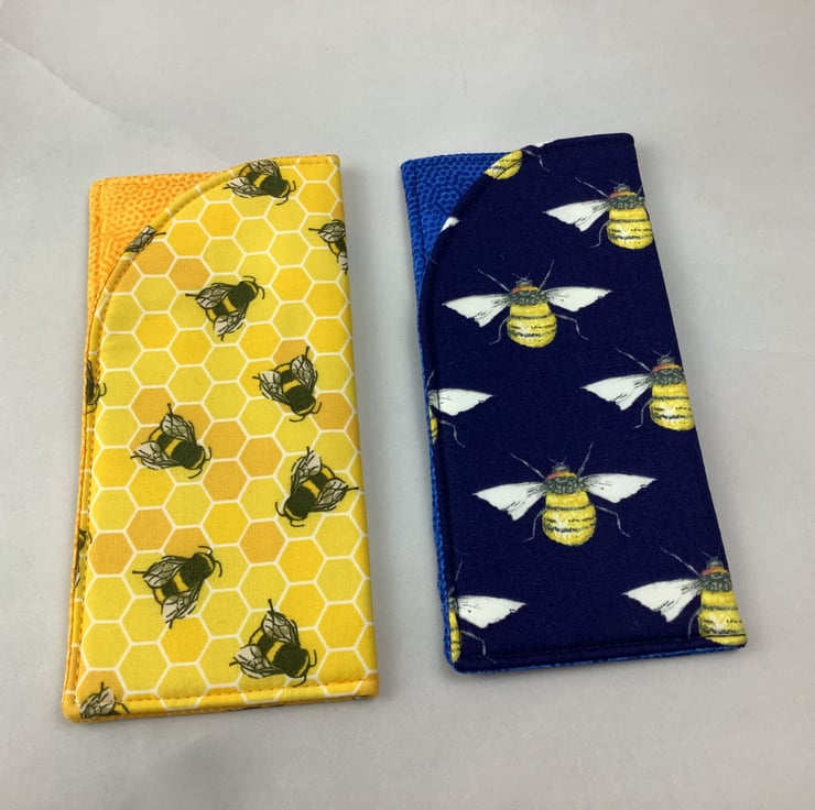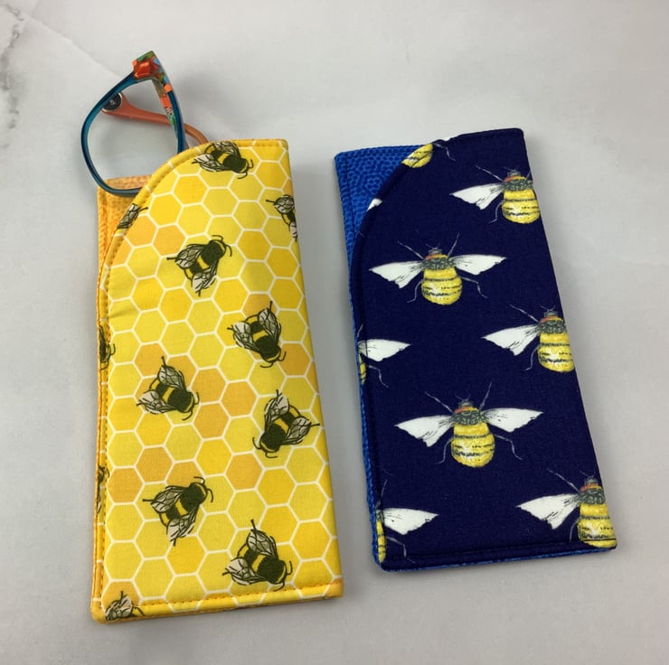 Handmade fabric glasses cases in a choice of fun bee cotton fabrics and lined in complimentary cotton fabrics. Lined with a dense interlining between the fabric layers for a padded feel. The size is approximately 17 x 8cm (6.7 x 3.2").