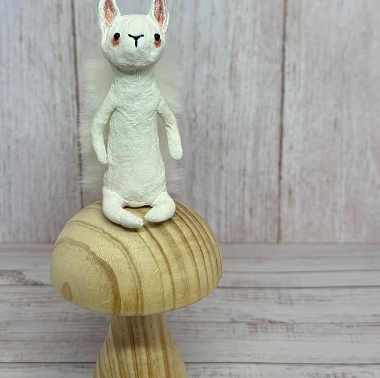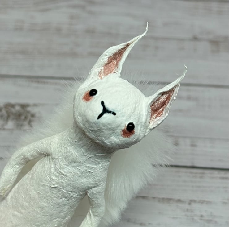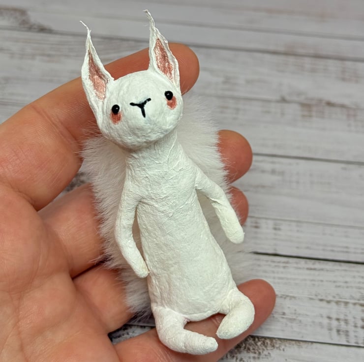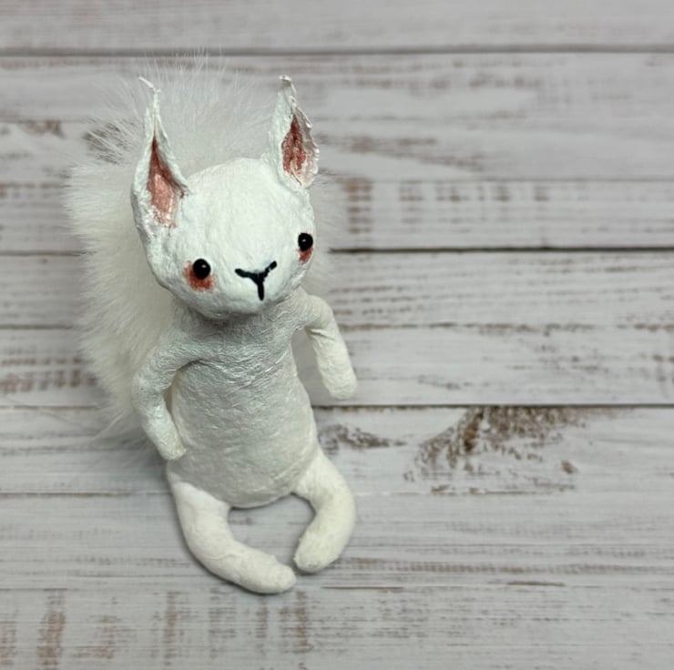 Spun Cotton White Squirrel Miniature Art Doll