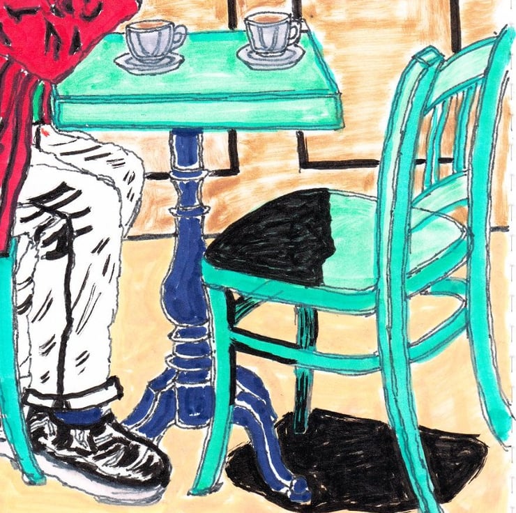 Ideal for collectors of mixed media art, café culture scenes, and expressive figurative illustrations.