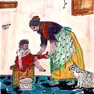 Blending acrylics with bold line work, the piece reflects themes of solitude, routine, and urban life. The composition invites viewers to pause and imagine the story behind the character, making it both relatable and thought-provoking.