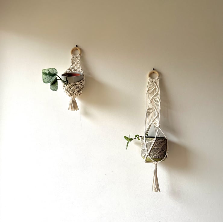 Handmade using cotton cord, this contemporary and modern plant hanger can be easily installed with just a nail in the wall making this accessible and renter friendly. This can support a plant pot up to 15cm in diameter.